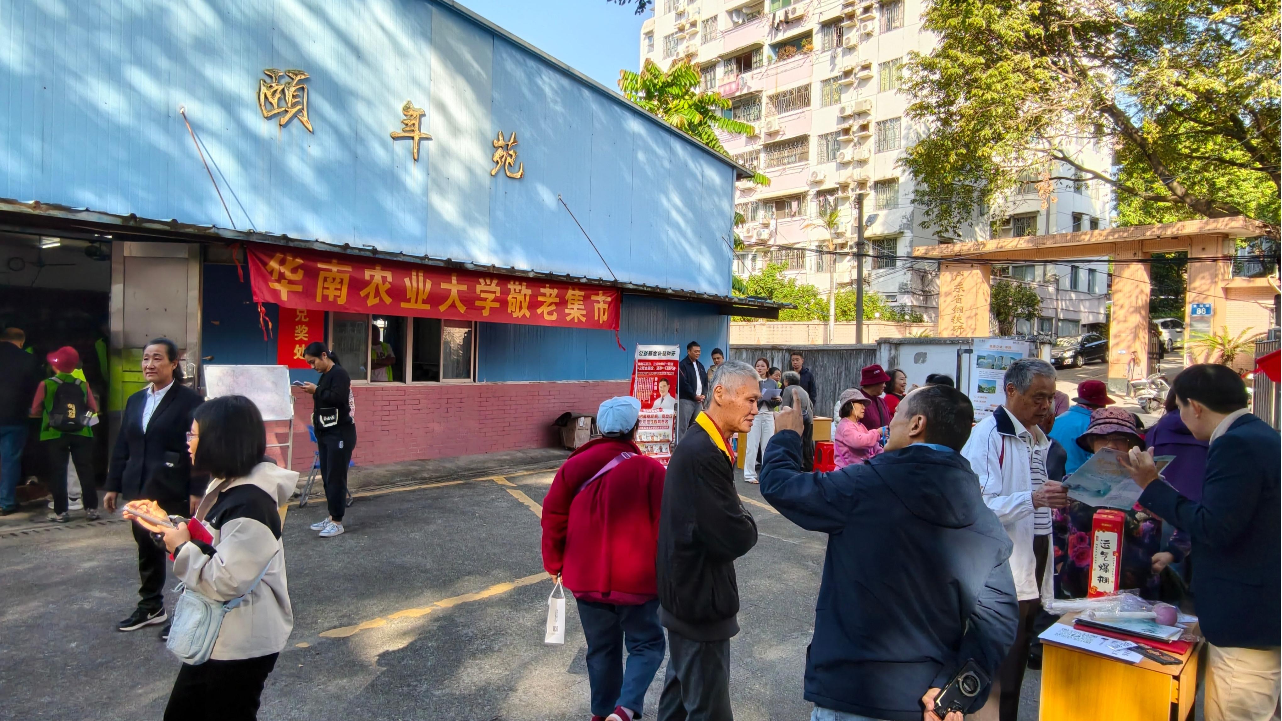 同时,在离退休处颐年苑门口,一年一度的敬老集市也是热闹非凡。养生保健摊位上,医护人员为老年人免费检查、答疑,给出科学养生建议;养老社区摊位前,工作人员热情地向老年人介绍各类贴心的养老服务;老年社团摊位里,丰富多样的活动吸引了老年人的关注和参与。